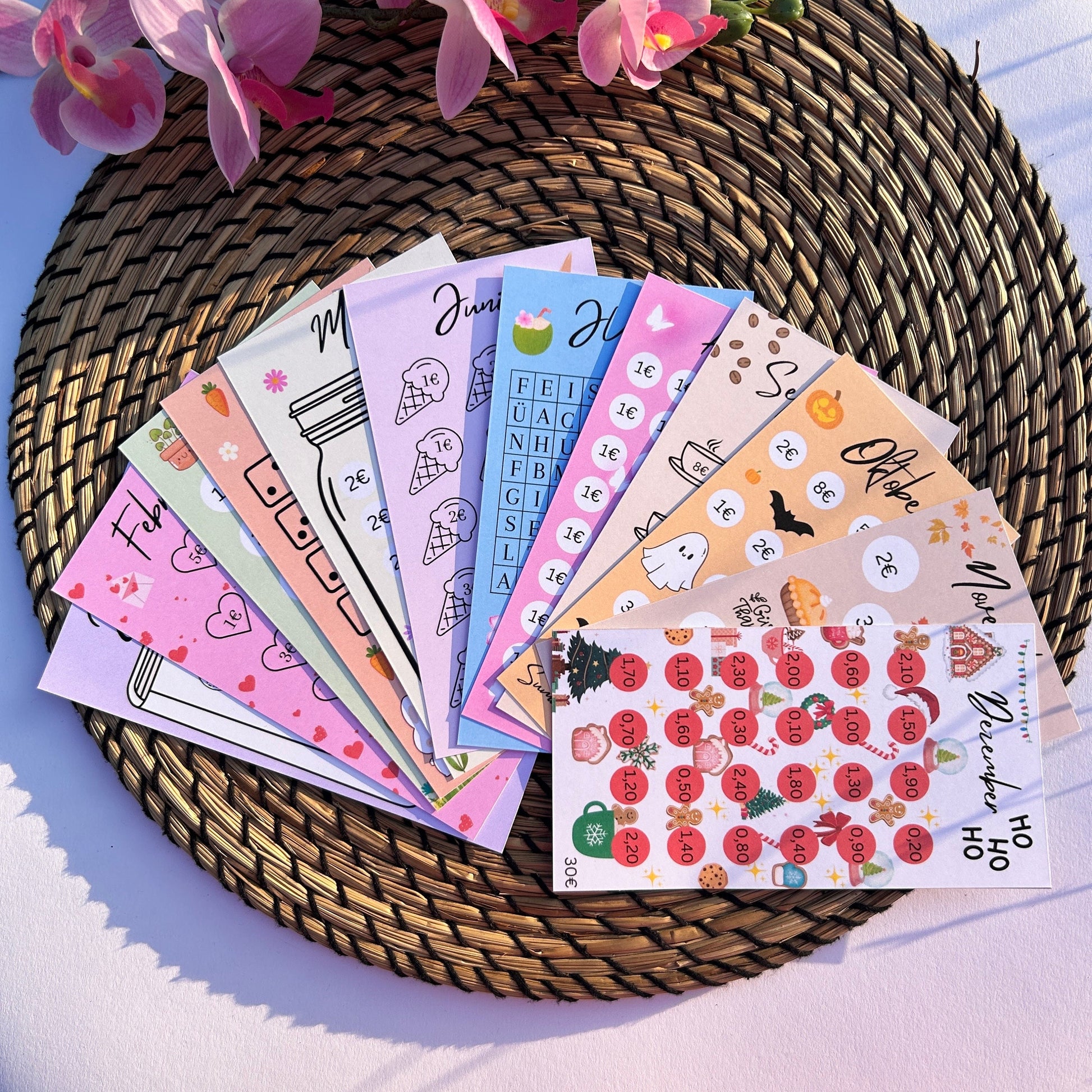 Die Jahressparchallenge eignet sich super um das ganze Jahr über zu sparen. Für jeden Monat gibt es eine Sparchallenge. Im Set sind die 12 Sparchallenges enthalten, ein Jahrestracker um jeden Monat zu Tracker und eine Erklärungskarte wie du Challenges funktionieren. Insgesamt könnt ihr 430€ mit dieser Challenge sparen.
