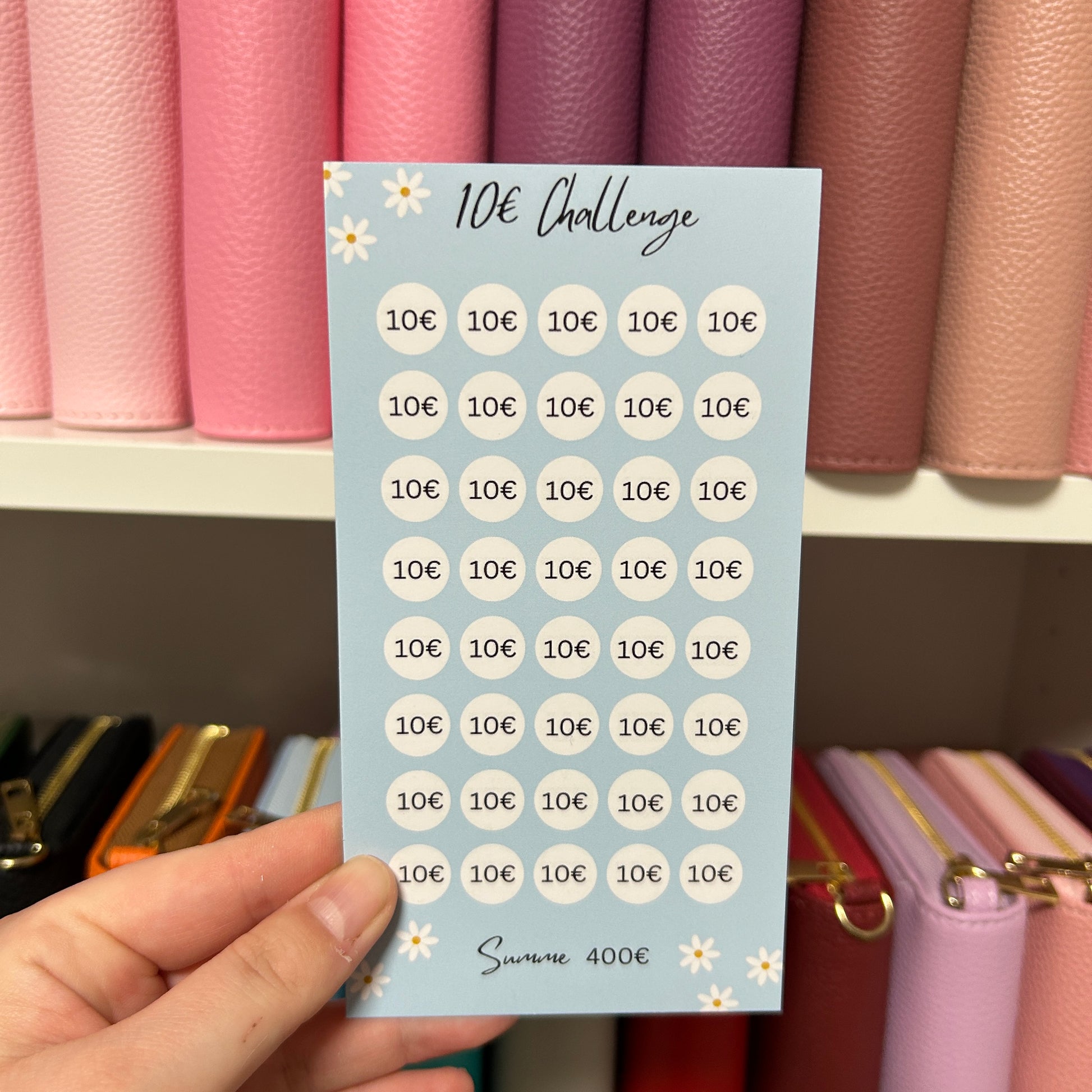 Die 10 Euro Challenges eignen sich perfekt um zu sparen. Immer wenn ich einen 10 Euro Schein im meinem Geldbeutel habe spare ich diesen oder wenn ich mal einen finde.