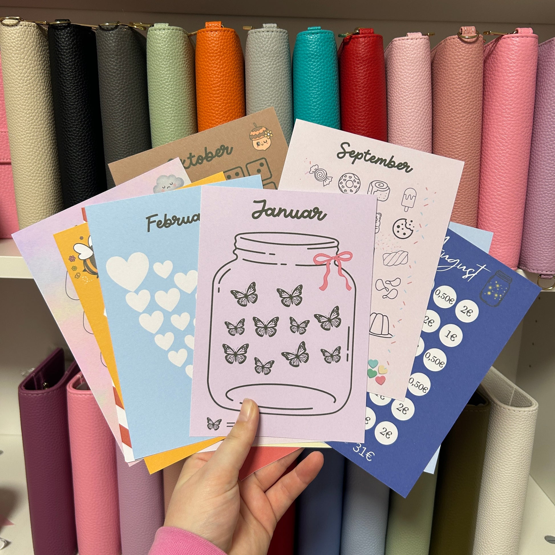 Die Jahressparchallenge eignet sich super um das ganze Jahr über zu sparen. Für jeden Monat gibt es eine Sparchallenge.
