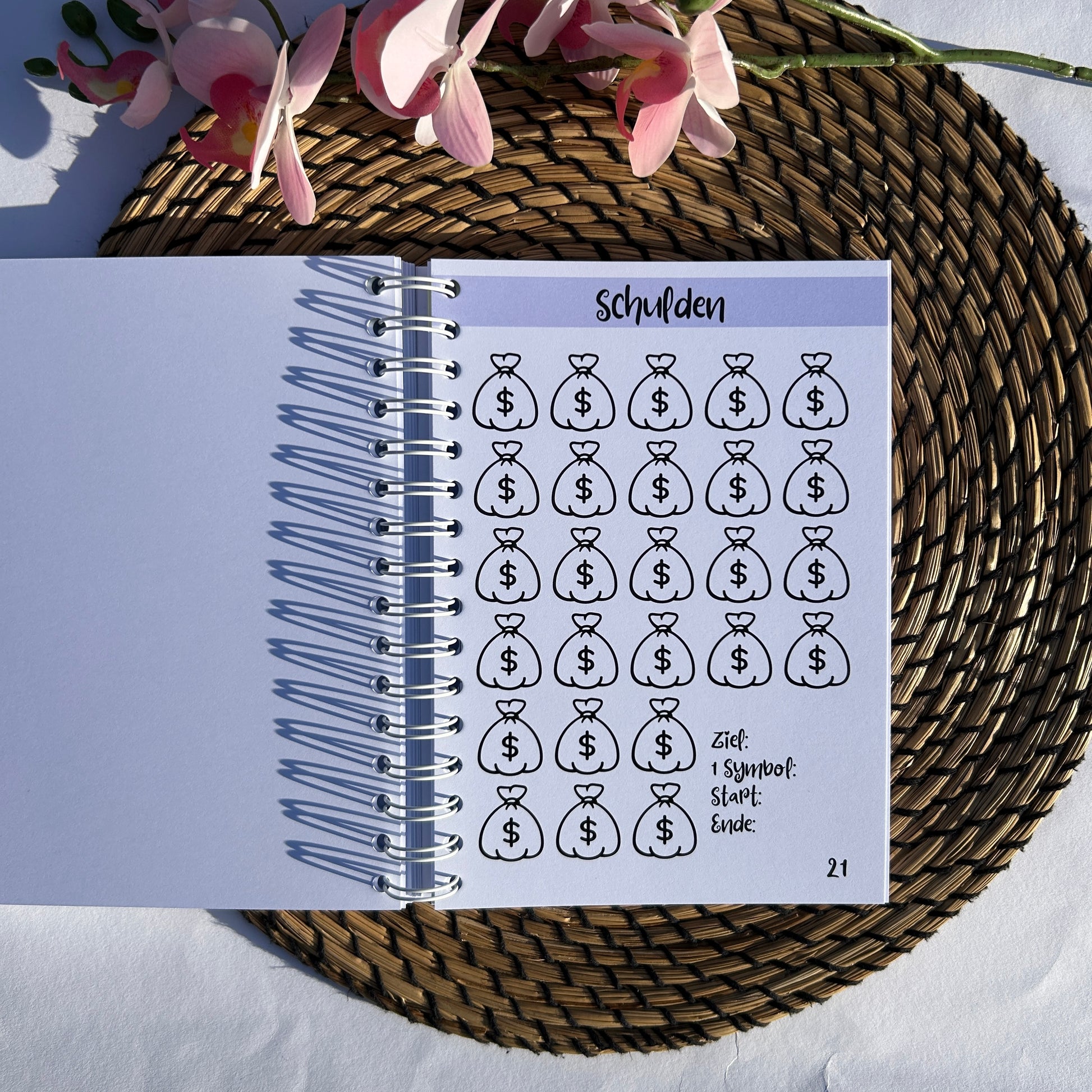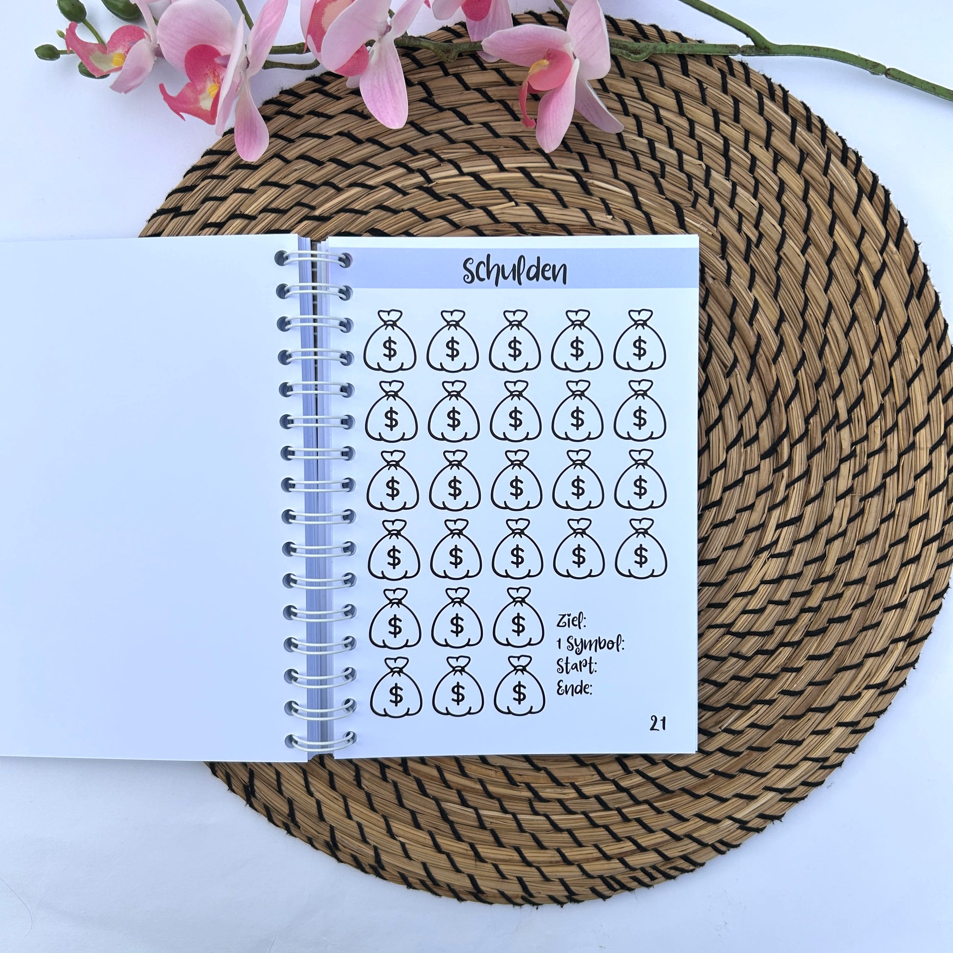 Du liebst es zu malen und auch zu sparen? Dann ist dieses Buch genau das richtige für dich. In diesem Buch hast du 40 Ausmal Sparchallenges in einem Buch. Jedes Symbol steht hierbei für einen Geldbetrag den du selbst wählst. Unten auf der Seite trägst du dann diesen Betrag ein und sparst ihn für jedes Symbol das du ausmalst. Du kannst dir zum Beispiel für ein Symbol 10€ oder auch 1€ festgelegen so wie du es kannst und möchtest. Es gibt keine Regeln.
