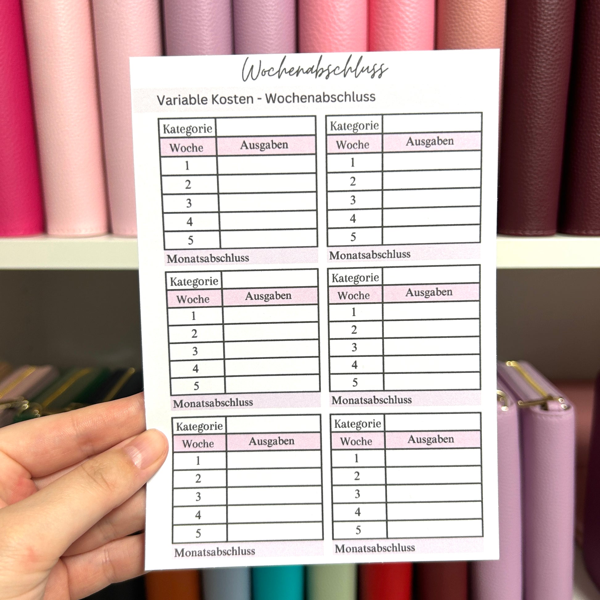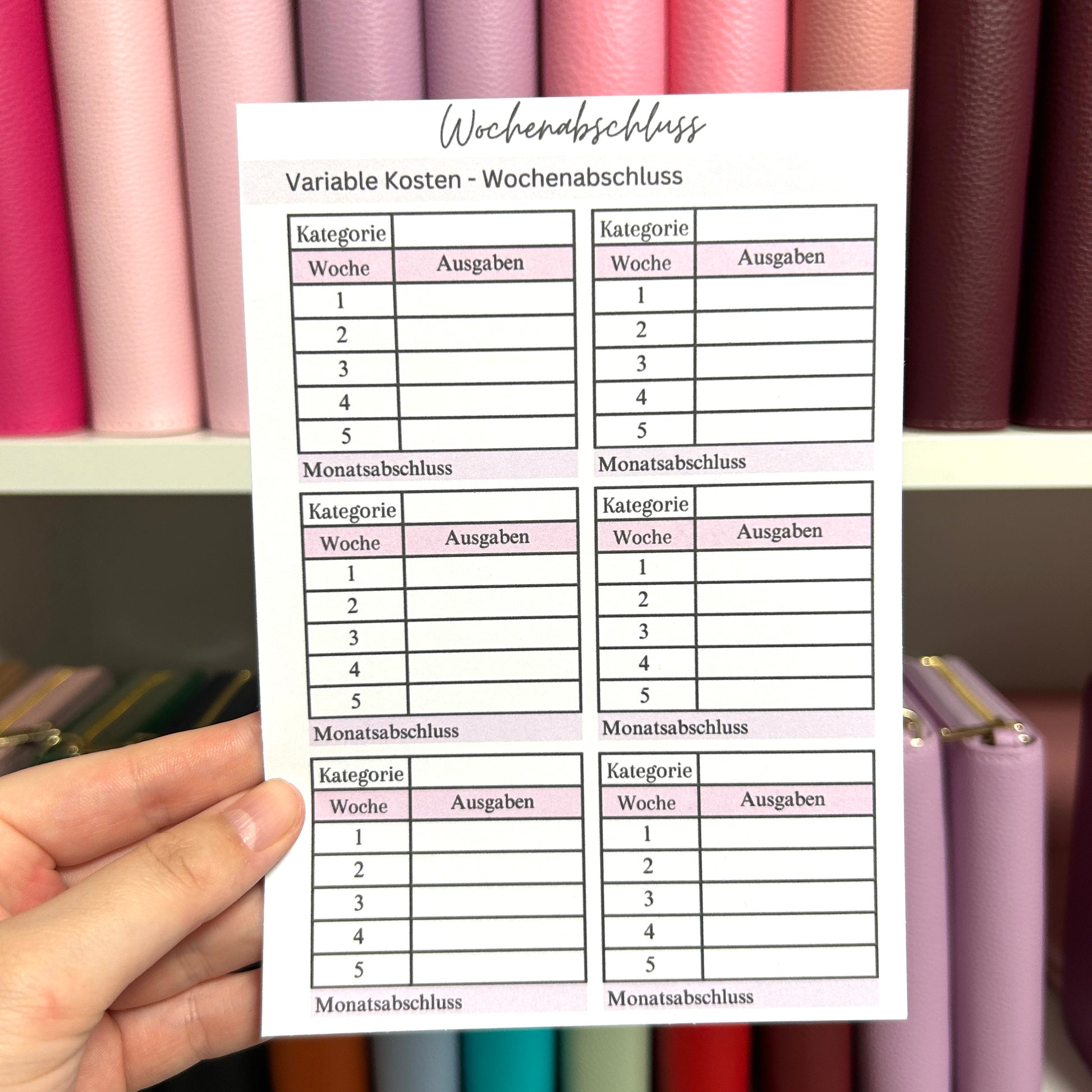 Der Wochenabschluss hilft dir einen besseren Überblick über deine Finanzen zu machen. Schreibe jede Woche auf wie viel Geld du ausgegeben hast. Die Inlays passen perfekt in deine Dina5 Hüllen und du kannst sie in deinen Budget Planer heften.