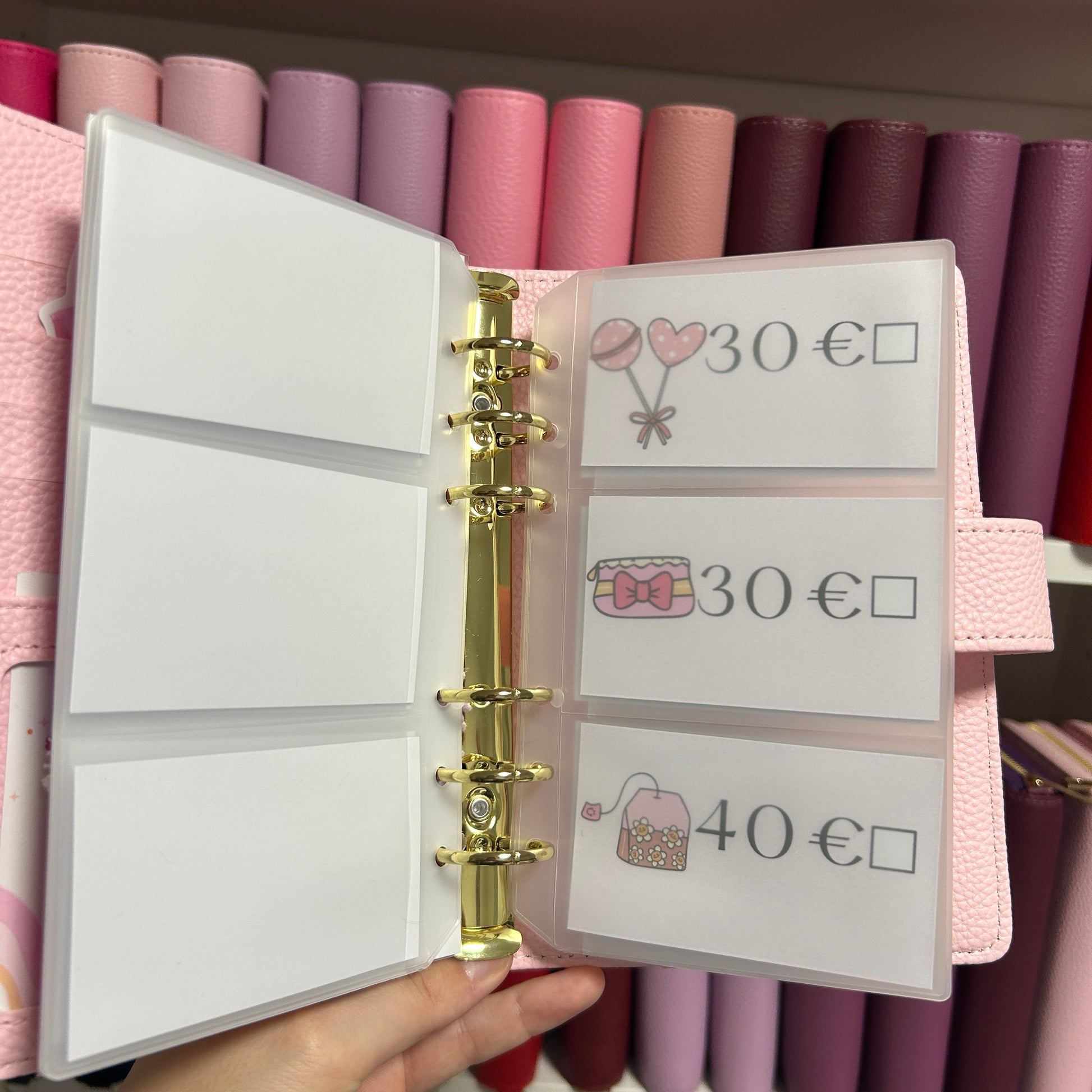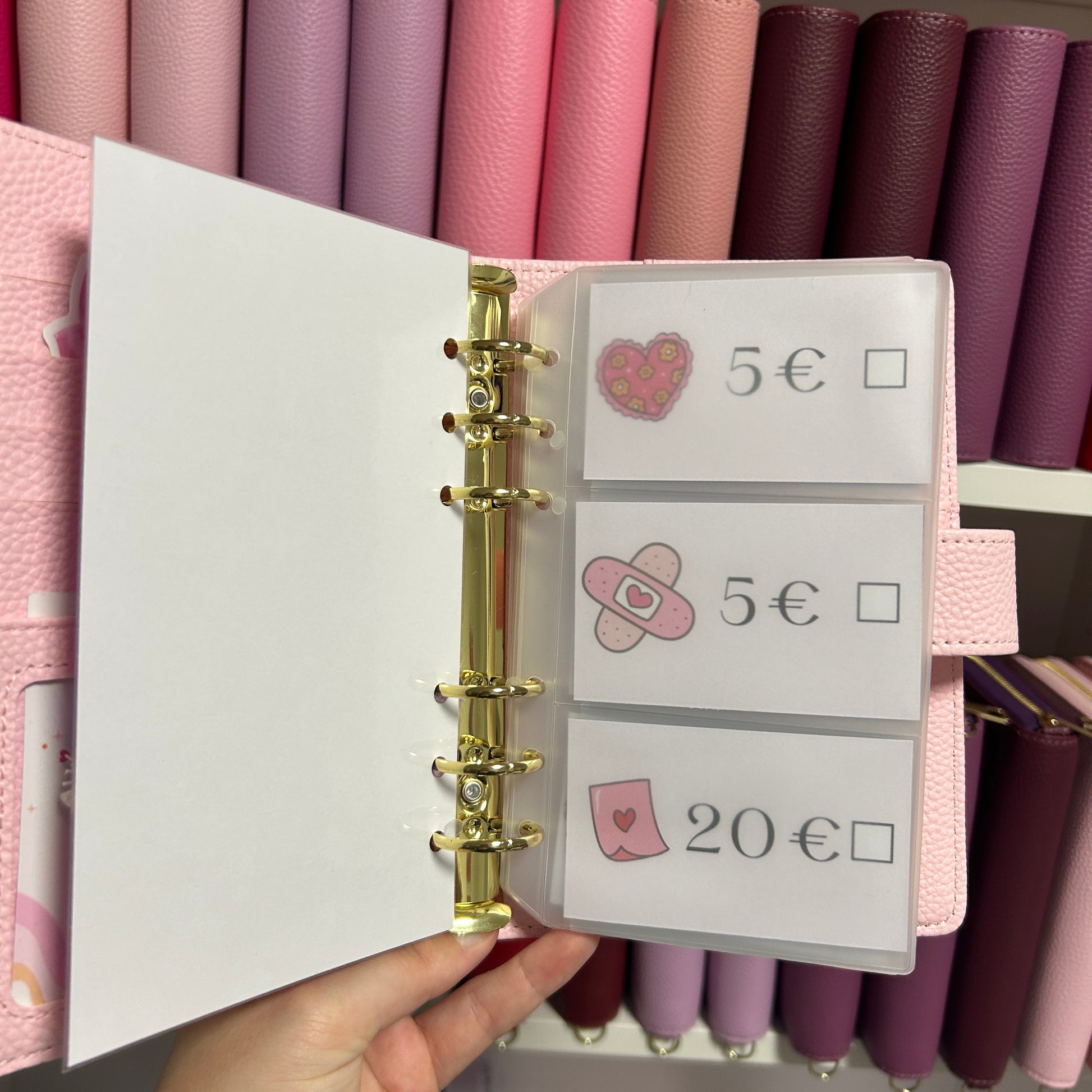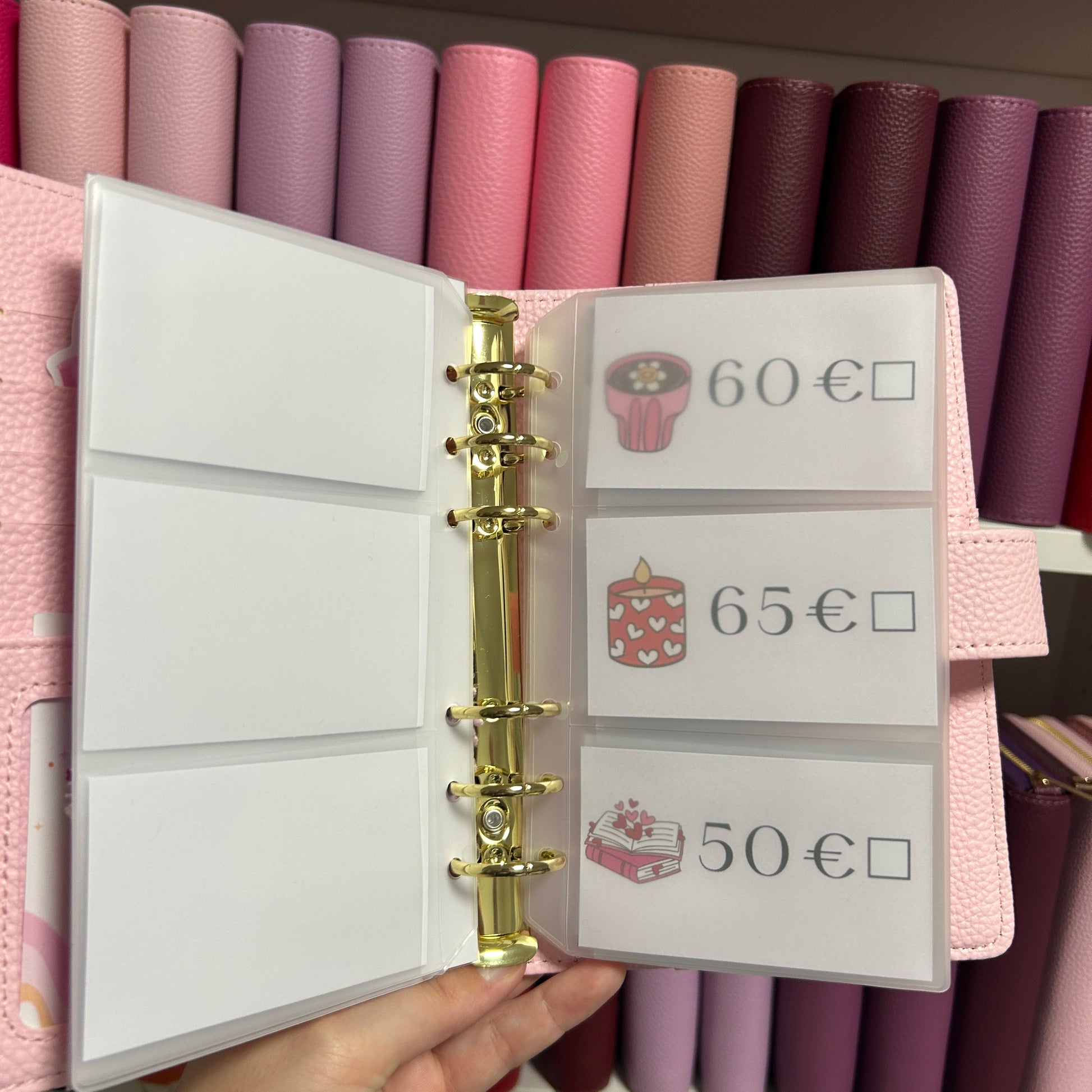 Der A6 Budget Binder, die Deko am Binder und der Anhänger sind nicht bei der Challenge mit dabei und können separat im Shop bestellt werden. Schreibe mir gerne wenn du eine andere Binder Farbe möchtest. Der Binder ist nicht mit dabei.